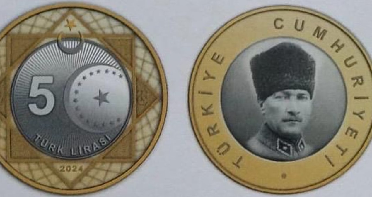 Hazine ve Maliye Bakanlığı, dün 5 TL’lik yeni madeni para basımı için Resmi Gazete’de tebliğ yayımladı. Darphane ve Damga Matbaası Genel Müdürlüğü’nün basacağı madeni 5 TL’lerin 10 Haziran 2024 Pazartesi günü dağıtımına başlanacak. Tedavüle çıkan madeni 5 lira, 29 Ekim’de Cumhuriyet’in 100’üncü yılı anısına çıkarılan 5 TL’lik hatıra paranın birebir kopyası oldu. Sadece hatıra paranın ön yüzündeki 100. Yıl logosu çıkarıldı. Gramajı, alaşımı ve ebatları birebir aynen kopya edilen 5 TL’liklerin üretim maliyetinin 2.30 lira olduğu öğrenildi.