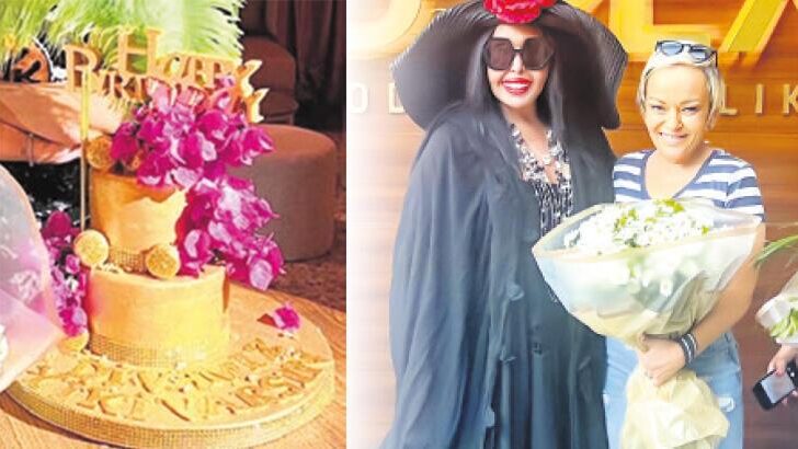Şef Özlem Mekik, divaya tamamı altın kaplama pasta hazırladı. Yenilebilir altın yapraklardan oluşan iki katlı pasta dikkat çekti. l