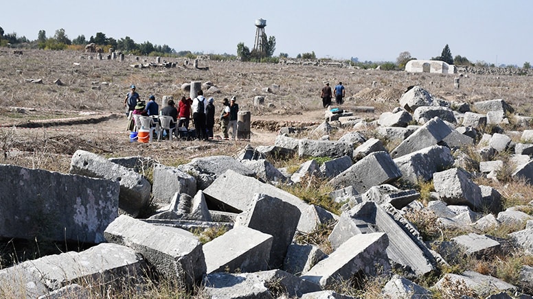 Erhan, 1 Temmuz’da başladıkları sezon kazılarına ek olarak antik sütunlu cadde kenarındaki bazı yapılarda da “Geleceğe Miras Projesi” kapsamında çalışmalar yaptıklarını dile getirdi.