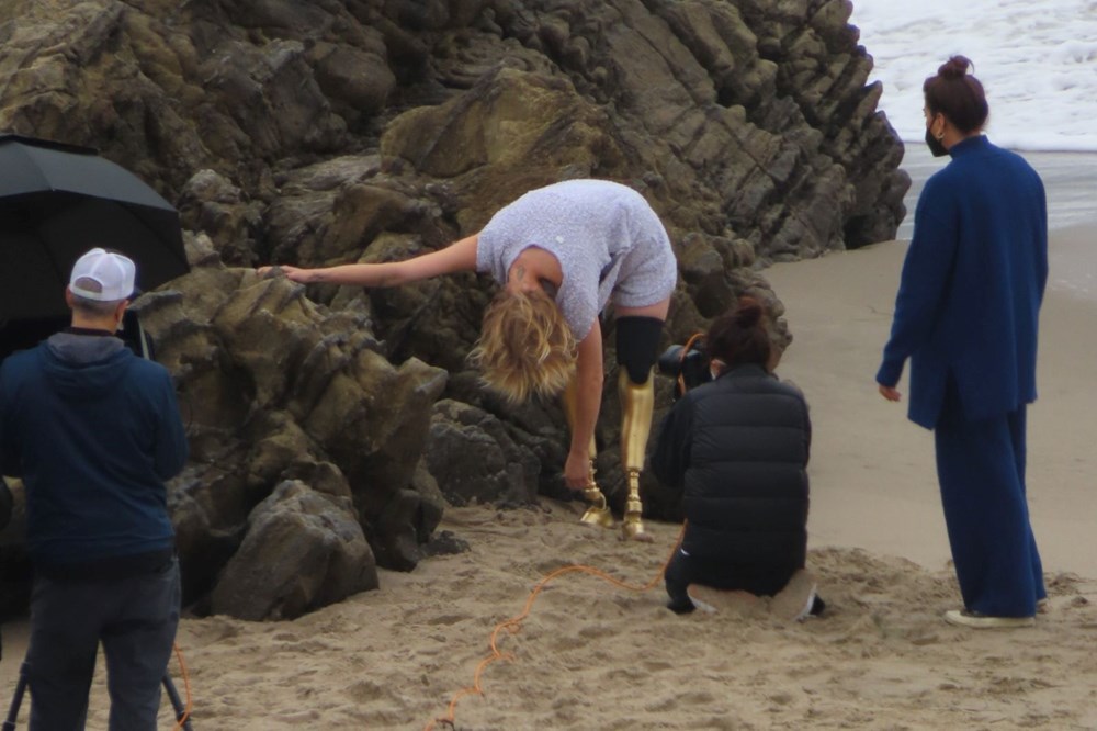 İki bacağı da ampute edilen 33 yaşındaki Wasser, Malibu sahilinde fotoğraf çekimine katıldı.