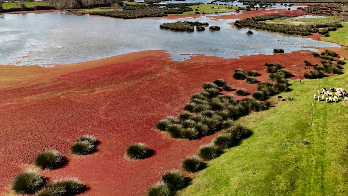Kızılırmak Deltası Kuş Cenneti’nde yayılan kızıl eğrelti otu, deltadaki su yüzeylerini kızıla bürüdü.