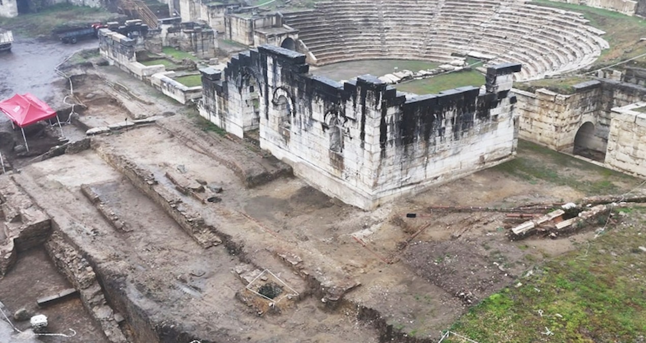 Tiyatronun giriş güzergahları ve etrafında sürdürülen kazılarda, pişirilmiş topraktan yapılmış borulardan oluşan altyapı sistemleri gün yüzüne çıkarıldı.