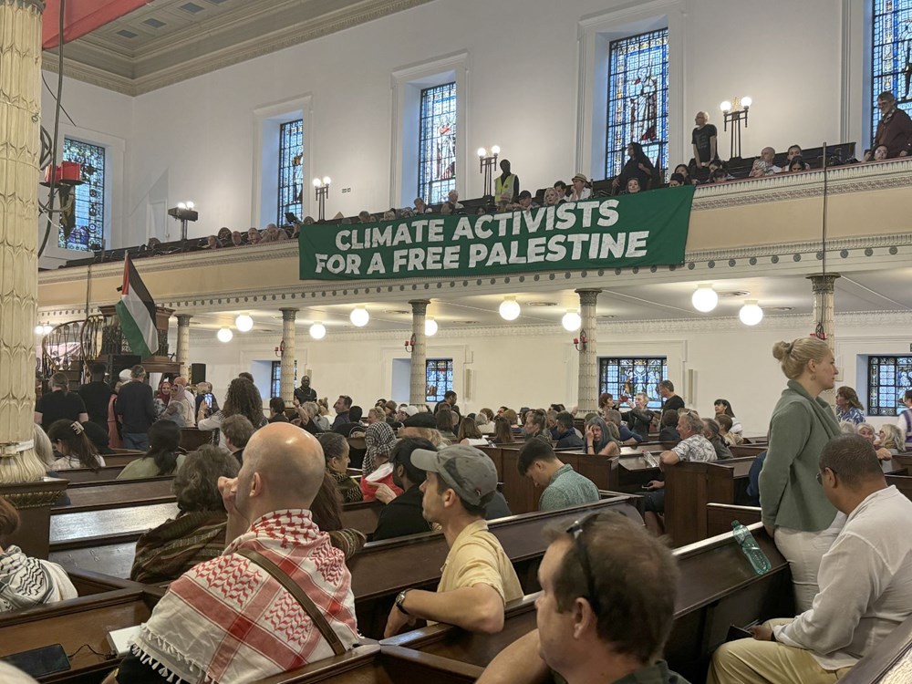 Londra’daki Euston St. Pancras Kilisesi’nde düzenlenen etkinlilke Waters’ın yanı sıra Yusuf İslam (Cat Stevens) ve rapçi Lowkey (Kareem Dennis) de şarkılarını Filistin için söyledi.