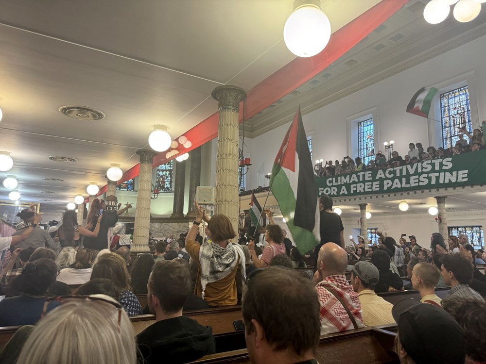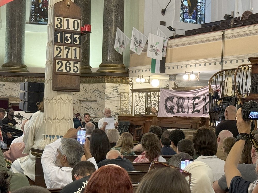 Öte yandan bir grup İsrail destekçisi, etkinliğin düzenlendiği kilise önünde eylem düzenleyerek Waters’a tepki gösterdi.