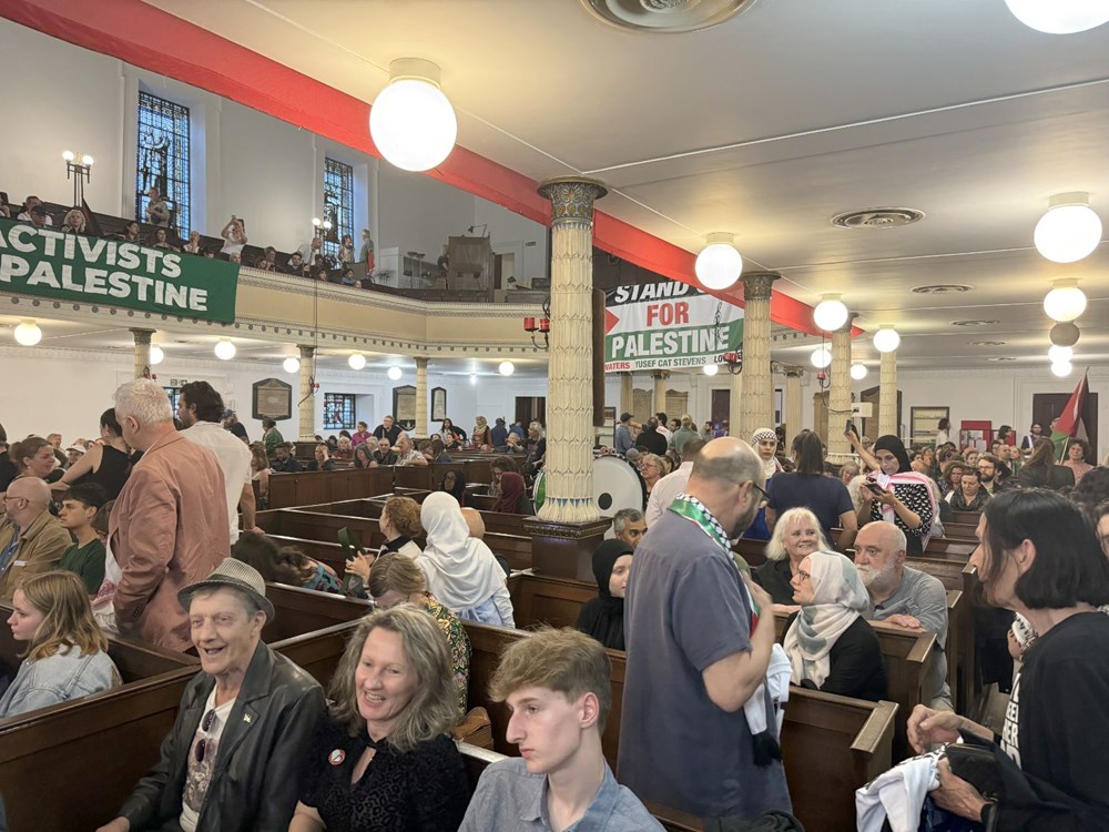 Etkinlik sanatçılar, Filistin destekçisi bağımsız milletvekili adayları ve katılımcıların Filistin’e destek sloganlarıyla sona erdi.