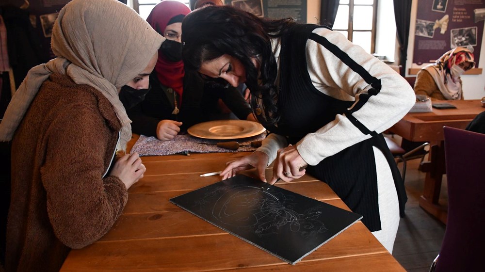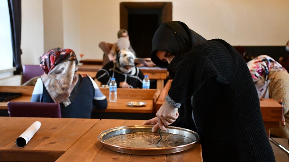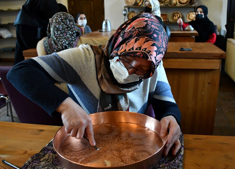 Bakır işlemeciliği kursu usta öğreticisi Münevver Arslan da unutulmaya yüz tutmuş meslekleri tekrar gün yüzüne çıkarmanın mutluluğunu yaşadıklarını söyleyerek, “Erzincan’dan getirdiğimiz bakır tabakların şablonlarını çıkararak üzerini burada tamamen kendi hayal gücümüzle işliyoruz. Elleri yatkın olan kursiyerlerimiz dışarıdan sipariş alıp aile bütçelerine katkı sağlıyor” şeklinde konuştu.