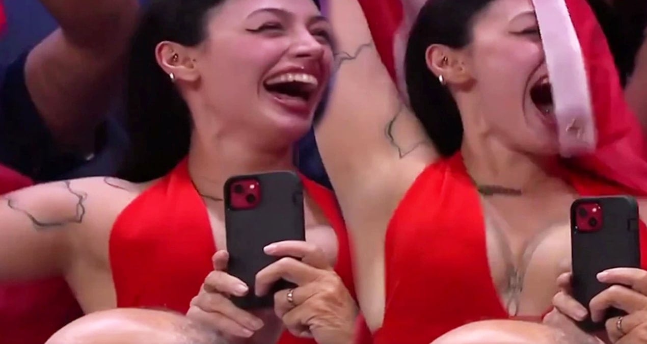 Bu arada maçın canlı yayınlandığı TRT Spor’da bir ara sevinen taraftarlar ekrana geldi. Milli takımı destekleyen bir kadıt ribünde zıplarken memesi açıldı.