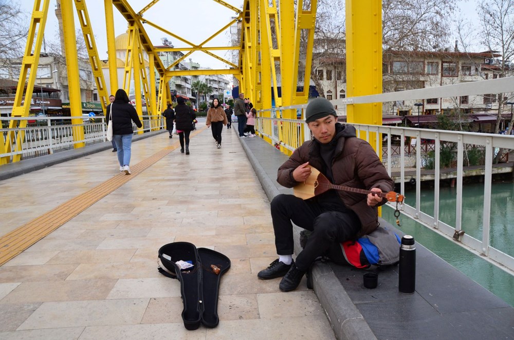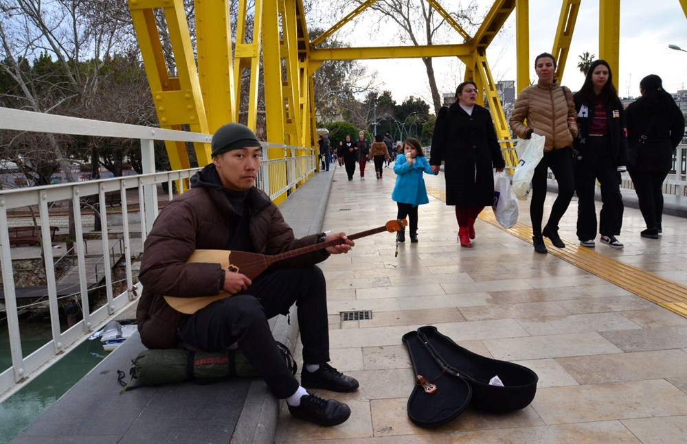 Yaklaşık bir aydır Türkiye’nin çeşitli il ve ilçelerini gezen Odun, bulunduğu yerlerin işlek caddelerinde geleneksel Türk çalgıları dombra ve temir komuz ile müzik yapıyor, kendine has yorumuyla gırtlaktan söylediği şarkılarla da beğeni topluyor.