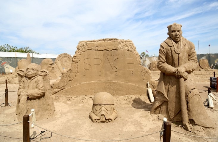 10 bin ton nehir kumu kullanılıp 25 kum heykel sanatçısı tarafından yapılan uzay temalı 200 kum heykel, yerli ve yabancı turistler tarafından ziyaret ediliyor.