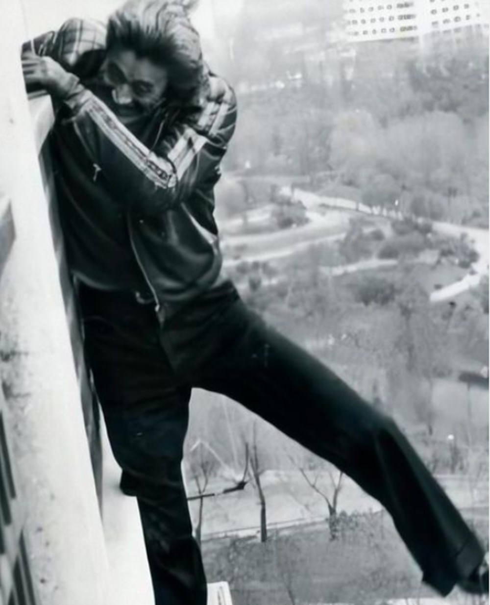 “Hiç kaza yaşadınız mı setlerde diye sormuş gençler. Ufak tefek bir şeyler oldu anlatayım birini sanırım adalet filmi çekimiydi balkonda çekmemiz gereken tehlikeli bir sahne var. Balkonun duvarına çıktım sahne başladı bir anda ayağım kayıp aşağı düşerken korkuluklara tutunduğum an böyle yansımış kameraya”